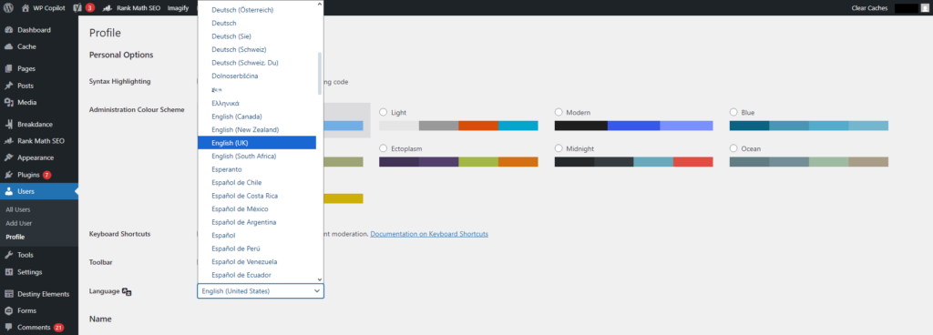 Method 2: Change Only Your Dashboard Language (For Individual Users)