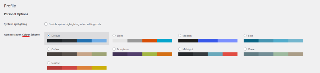 Look for the Color Scheme option (or Colour Scheme if it’s working correctly)